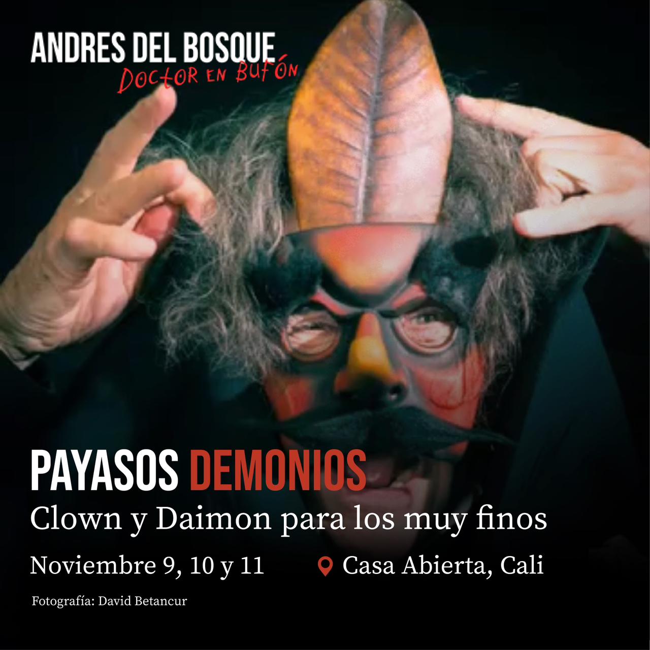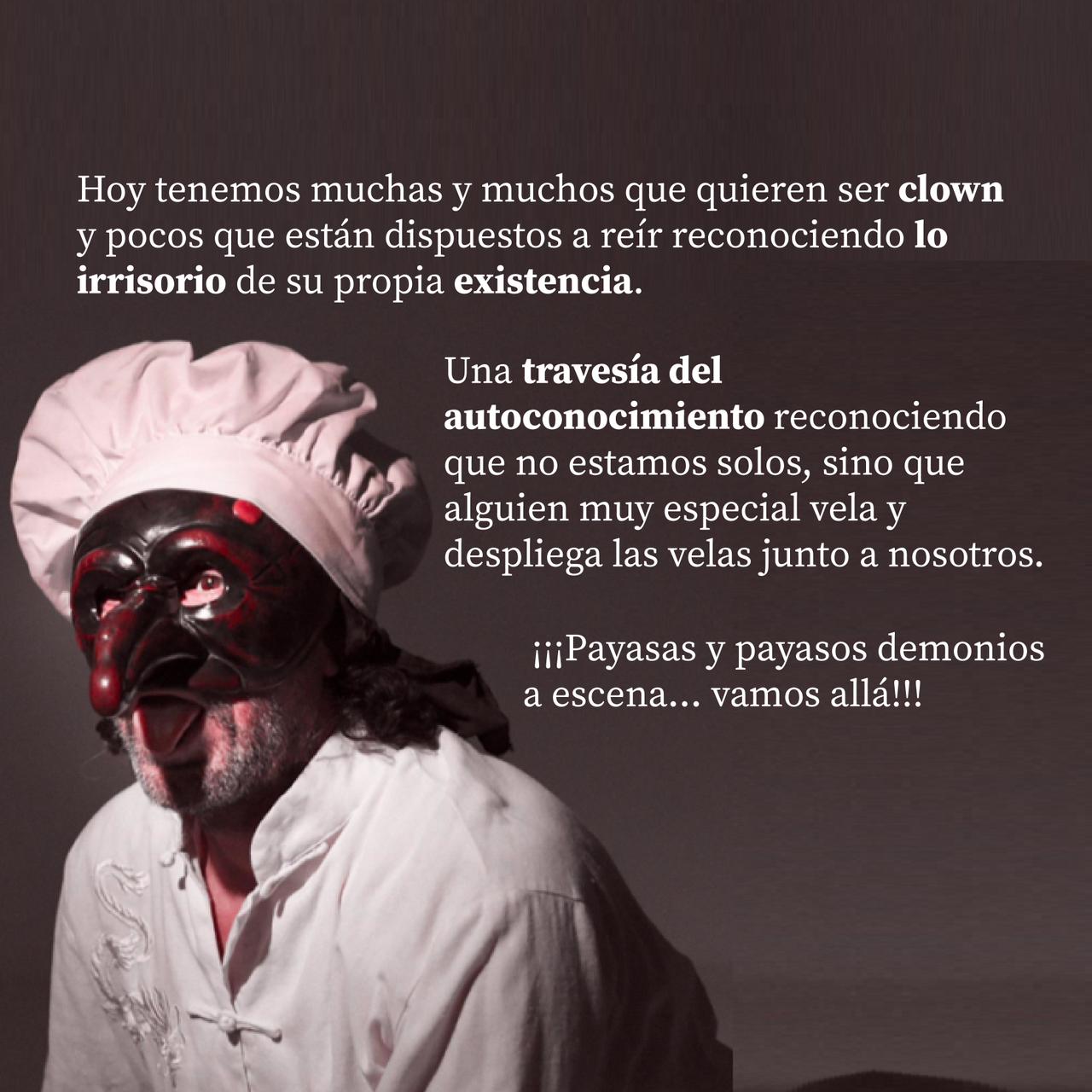Taller: Payasos Demonios, Cali9 noviembre 2024Clown y Daimon para los muy finos:Sábado tarde, domingo completo y lunes mañana, total 17 horasEn Casa Abierta, CaliCupos limitadosInversión: 390.000Inscripciones: xxx xxx xx xx