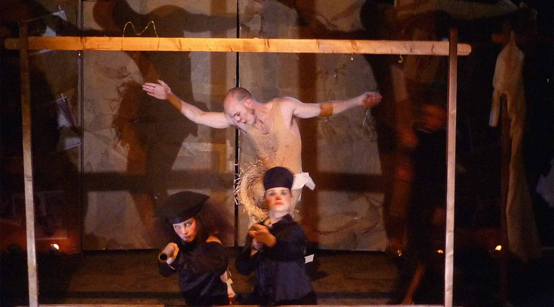 Los payasos aportan una dramaturgia descuartizada, hecha de pedazos similares a un teatro de feria y varietés, cuyos números y trozos se buscan para crear el sentido de la fábula, así como los cuerpos descoyuntados y artificiosos de las actrices, que en danza macabra, reúnen sus huesos para presentar su historia frente al público, tal como en el Mito del Cuerpo desmembrado.